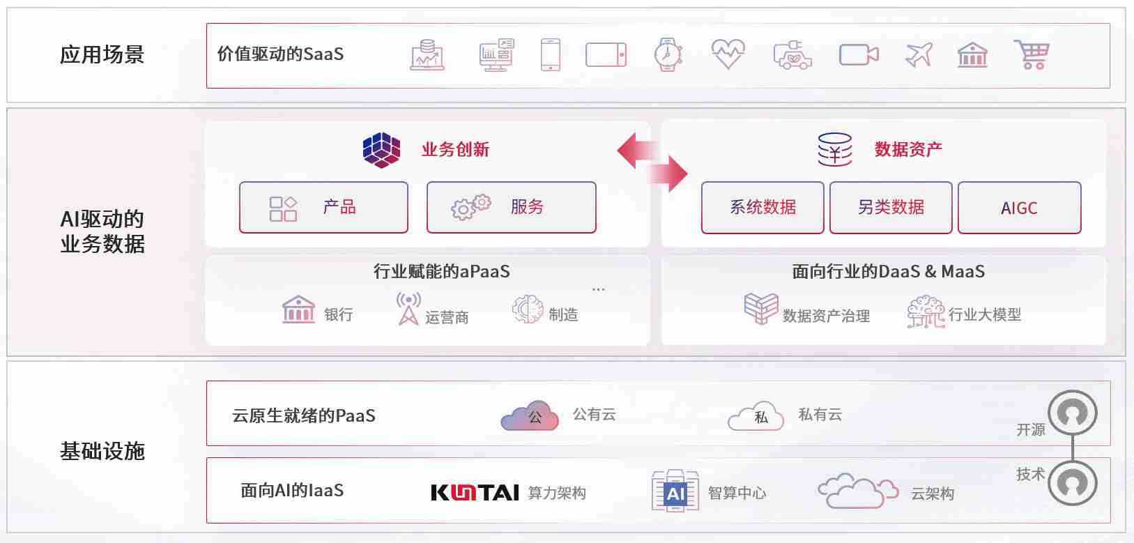 数字时代,,围绕企业数字化转型的关键要素,,z6com尊龙数码开创性的提出数云融合战略和技术体系框架,,着力在云原生、、、数字原生、、、、AI原生和信创产业上架构产品和服务能力,,,,为处在不同数字化转型阶段的快消零售、、、、汽车、、、金融、、医疗、、、政企、、、教育、、、运营商等行业客户提供泛在的敏捷IT能力和融合的数据驱动能力,,,,构建跨界融合创新的数字业务场景和新业务模式,,助力企业级客户建立面向未来的核心能力和竞争优势,,全面推动社会的数字化、、智能化转型升级。。