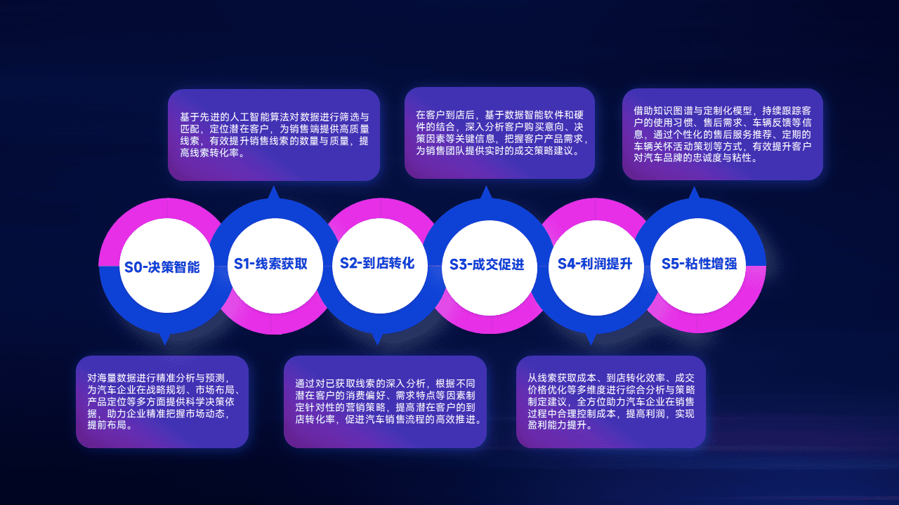 通过拓宽潜在客户来源、、、优化线索分配并提高到店转化率,,以增强销售效率。。。。同时,,,利用线索数据不断优化分析模型,,,有效提升转化率,,,扩大营销影响力。。。。